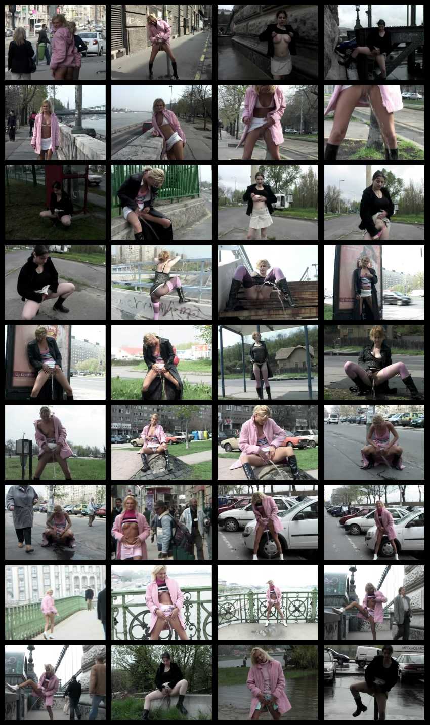 В фильме задействованы 3 чешские девушки. В большей части сюжетов абсолютно раскомплексованная стройная блондинка, разгуливая по городу распахнувши или задирая пальто, демонстрирует прохожим свои интимные части тела, ну и естественно писяет, стоя на глазах у всё тех же случайных прохожих. Писсинг на оживленных улочках города, набережной, вдоль шоссе, в парках. Дополняет её полноватая молодая брюнетка с небритым лобком, которая немного скромнее, поэтому выбирает более безлюдные места для писсинга, хотя так же попадается на глаза прохожим. Ну и на закуску озорная рыжая девчушка, демонстрирует акты мочеиспускания в публичных местах, а присев пописять на автобусной остановке играет со стуйкой мочи рукой и облизывает обсиканные пальцы.