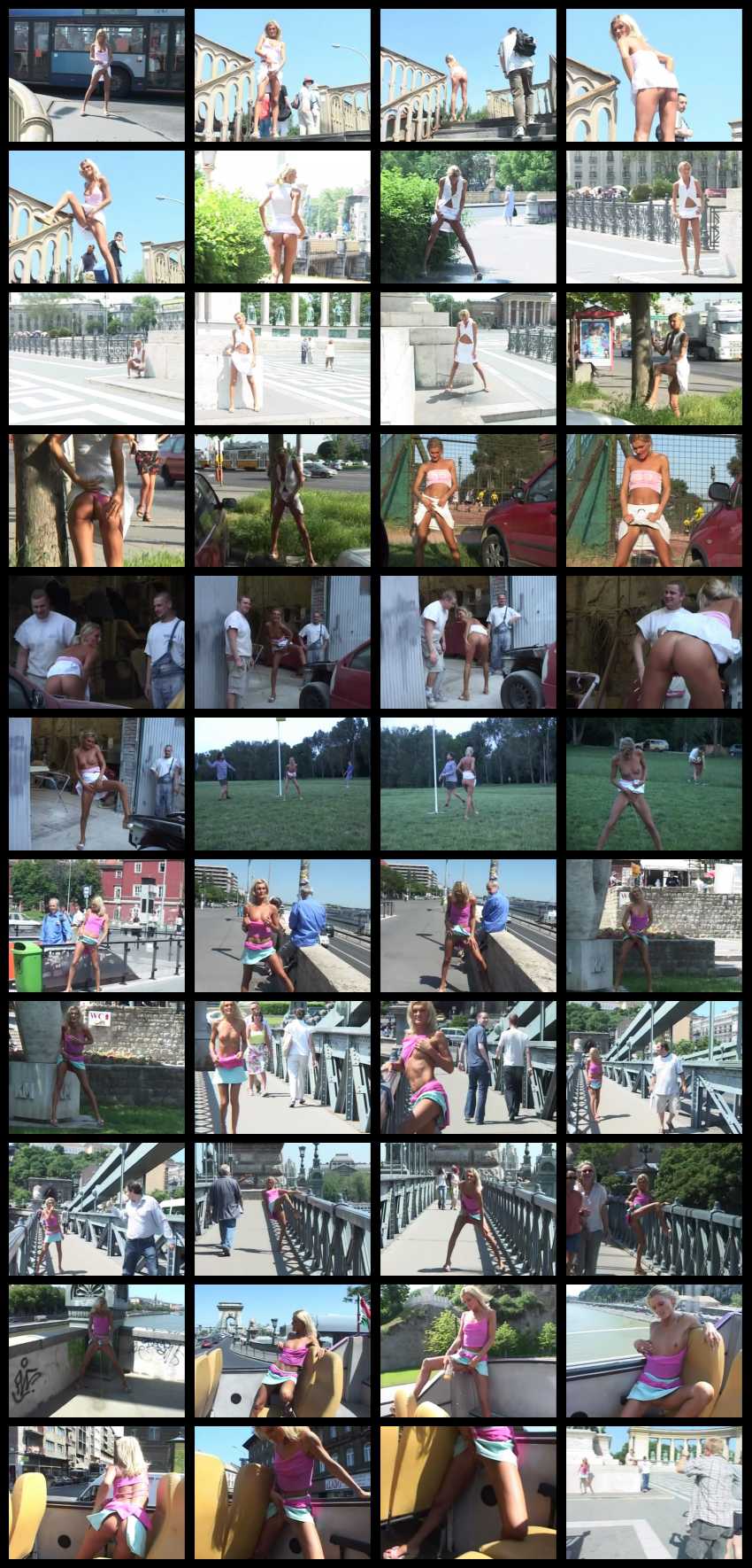 В жаркий летний день, надев юбку и маячку, развратная девушка разгуливает по городу демонстрируя проходим свои интимные части тела и писяя у них на глазах. Писсинг в парке, возле спортплощадки, на площади возле памятника архитектуры, специально позировав для фото случайных прохожих. Заглянув на СТО блондинка неслабо порадовала парней, продемонстрировав себя голяком и сделав пись-пись пред их удивленном взором. Оголение без всякого стыда перед прохожими на узком пешеходном мосту и последующий писсинг стоя, топлесс прогулка по городу на открытом прогулочном автобусе с писсингом в нём. А подойдя к оживленной лестнице, девушка подняла ножку на перила и продемонстрировав всем желающим наличие тампона во влагалище и свисающего наружу канатика пустила не слабую струю мочи.
