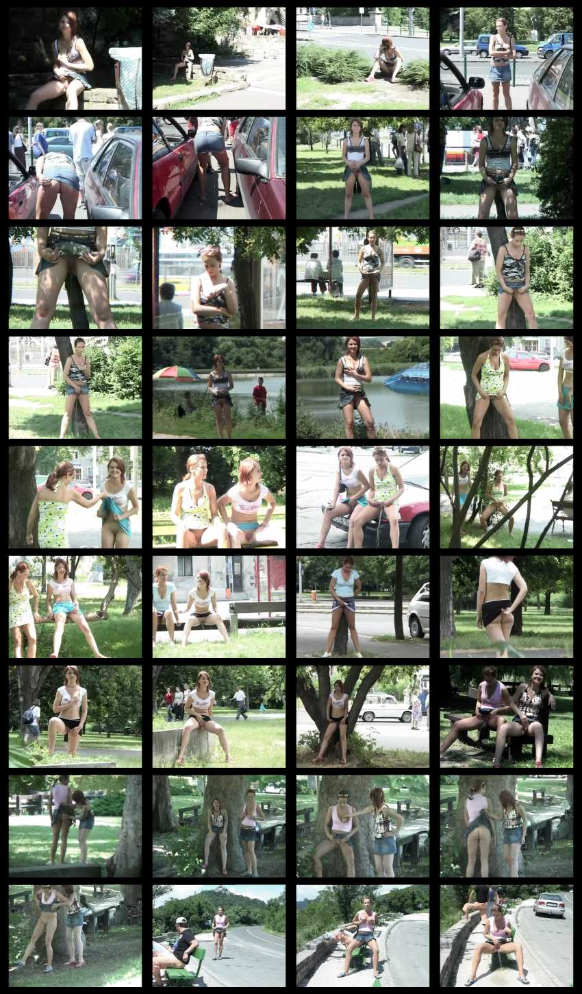 Две девчушки ссыкушки, разгуливая по улочкам города и паркам, устраивают сексуальные писсинг шалости. На дворе жаркое лето, поэтому одежды минимум, топик и юбочка под которой нет трусиков. И вот эти скромные проказницы то сиську ненароком достанут, то письку засветят на глазах у случайных прохожих, по ходу присматривая местечки, где они совершат акт публичного мочеиспускания.